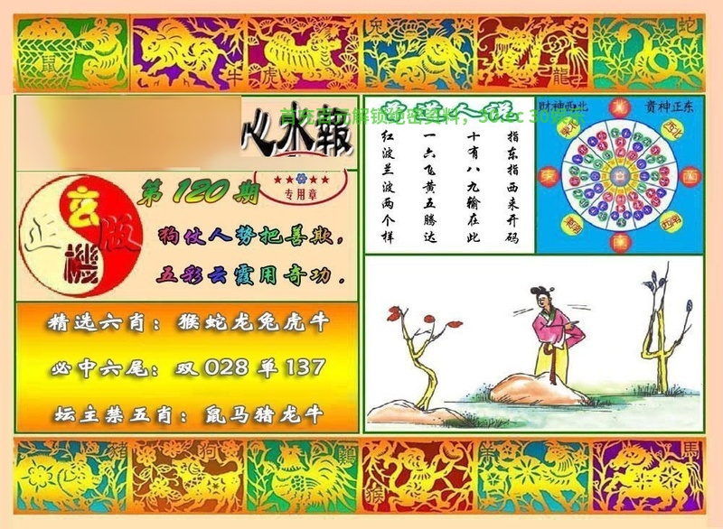 121期:横批字/禁合/第一手/智力金/特一玄/五行生肖/一份杀肖料